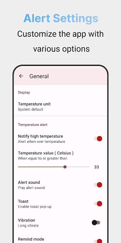 ► Get notified when the battery temperature gets too hot.