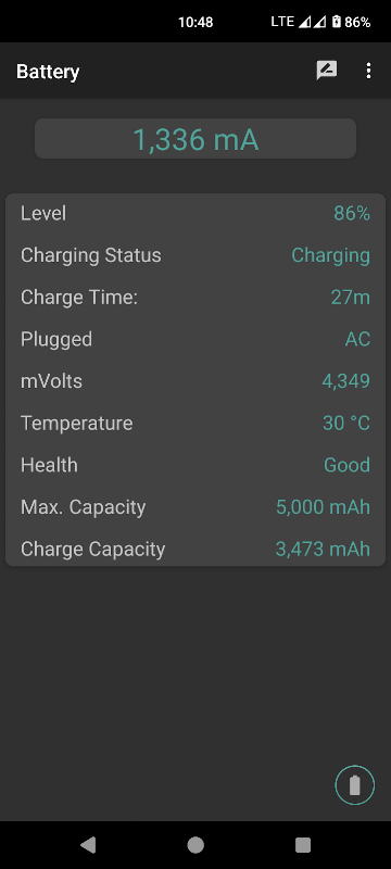 Battery App displays the current leaving and entering the battery in real time.