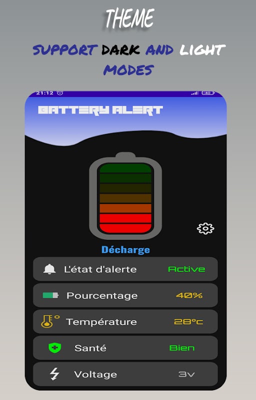 The battery is a very sensitive part, and it is really necessary to give you good use of mobile. For better use of the battery it is better to charge it up to 80% or to charge it up to 100% and not to leave it connected to the charger for a long time. Battlert is for this purpose, this application allows you to: