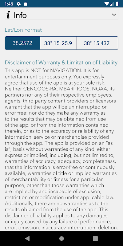This app contains experimental data and is NOT for navigational purposes.