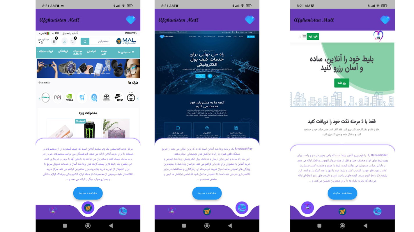 ترکیب سه وب سایت در یک پلتفرم مرکز خرید افغانستان پرداخت آنلاین رزرو آنلاین بلیط