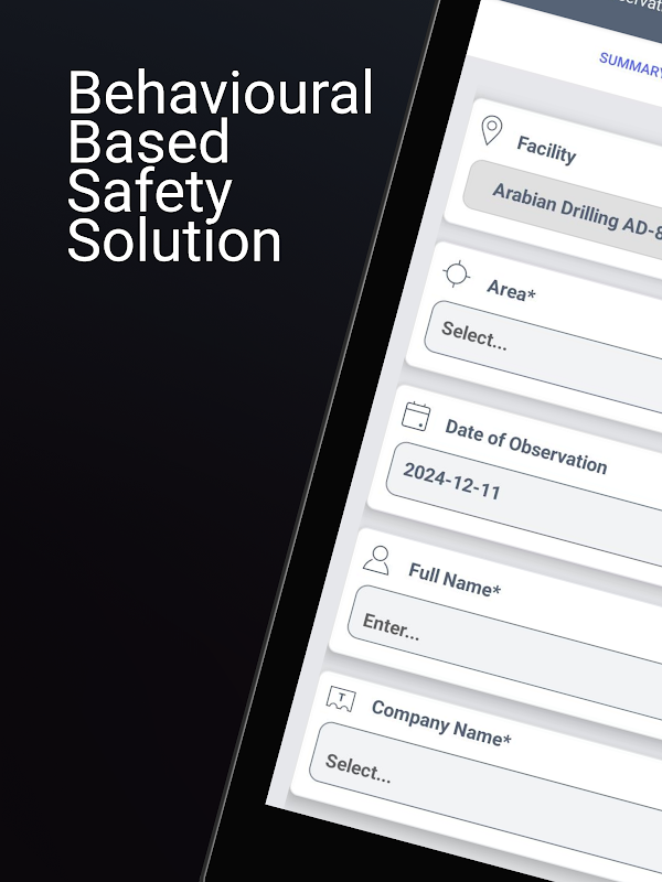 Behavioral Based Safety Solution App is designed to help users make guided safety observations in their work place.