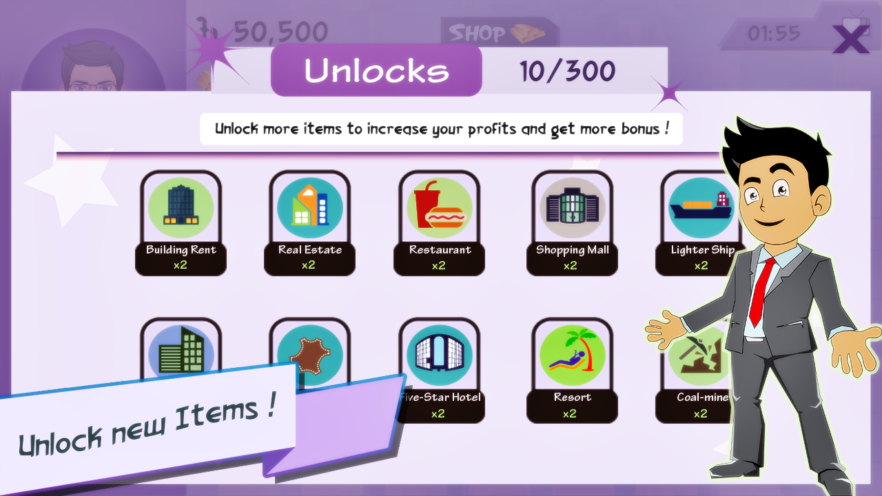 Manager: For each business there will be a Manager. By unlocking him users will be able to increase the number of sales/Money by 10%.
