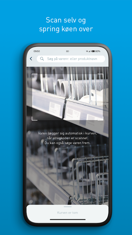 You can also scan items in the store yourself. Take what you need, scan, swipe, show your receipt - then you are ready to continue your day without standing in line. Fast in - fast out!