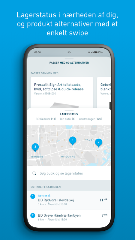 With Brødrene Dahl's app, you can easily get goods delivered to your exact location with a swipe. And even within a very short time with a Quick Delivery. You can also reserve items with KvikAfhentning. Then we pick and pack for you, so you can just pick up on the go.