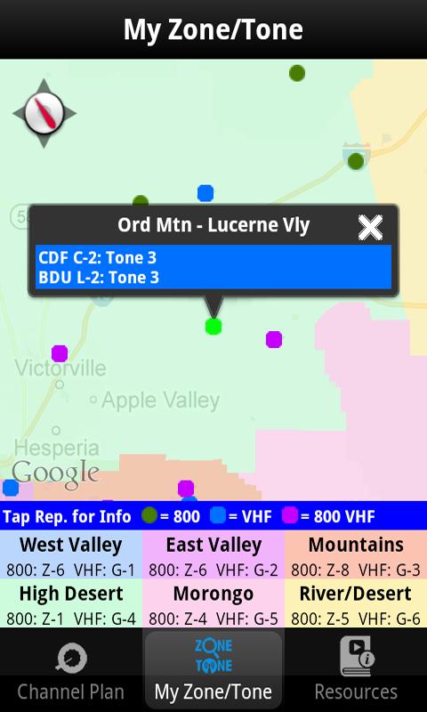 The BDC Comm Guide assists the user in locating frequencies used by San Bernardino County Fire VHF and 800mhz radios. Channel plans are included for BK VHF radios and XTS/APX 800mhz radios. Users looking for specific channels can search by frequency number or channel name. The application can plot the device's current location on a map and assist in cross referencing the nearest radio site or appropriate radio zone. Training resources are included to instruct personnel in the operation of 800mhz and VHF radios.