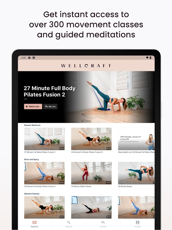 • Classes range from 5-50 minutes with varying levels of intensity and muscle focus.