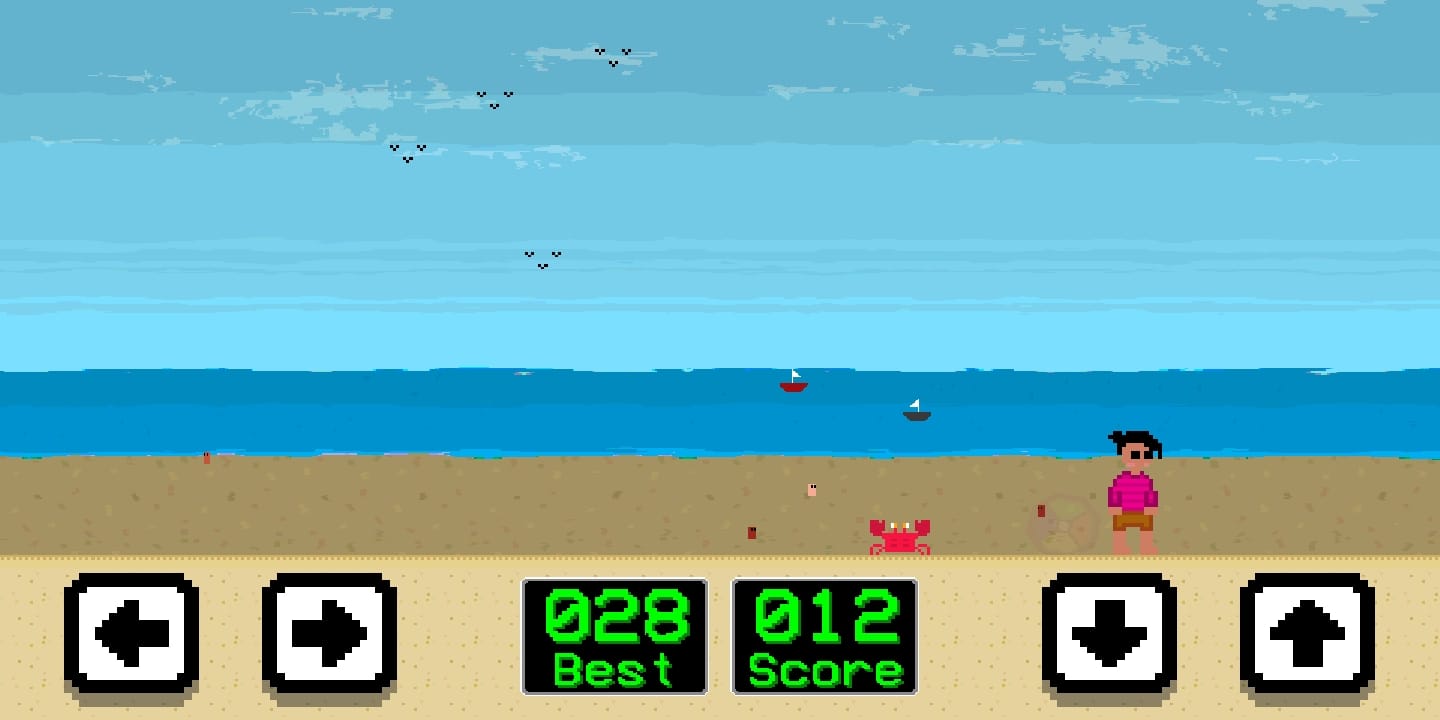 A light, pleasant song, a calm and peaceful environment, to the sound of ocean waves, with bathers and boats, birds and crabs? ping pong balls? Skateboards and flying popsicles?