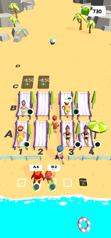 Beach Management is now in a very fun way. Arrange a sunbed for people who come to the beach without getting angry and angry! Otherwise, you may lose angry people and this will cause you to earn less. Some people may ask you for a parasol, you can only find out by spying on them. It's not as easy as you think.