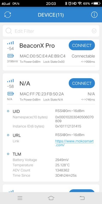 3.Read information from BeaconX Pro, including iBeacon, Eddystone and Sensor data etc.