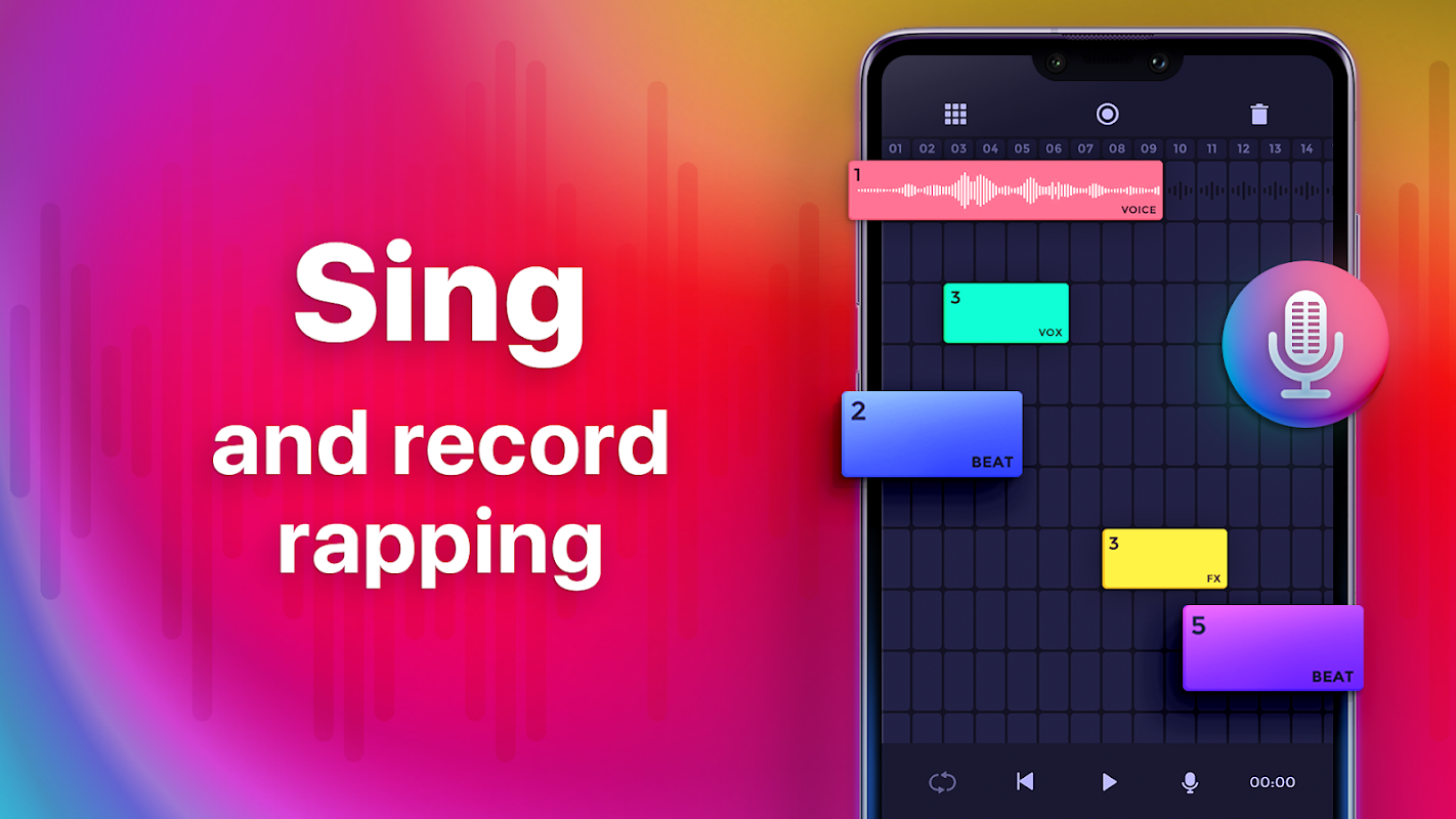 Enjoy amazing sound packs. Choose your favorite genres, pick and drag & drop loops, mix them and get your unique track. Experiment, make beats, sing and record rapping on the go anywhere!