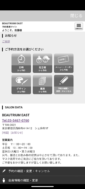 You can check your reservation status from My Page. Check your store visit history and receive the latest news from stores.