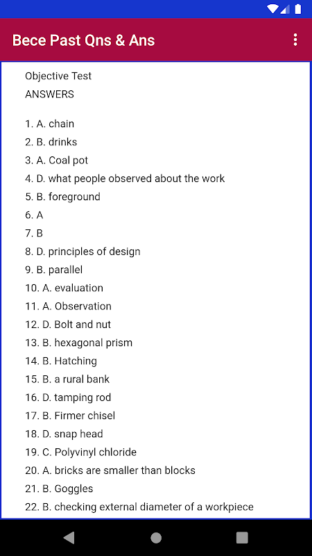 Get this app for bece past questions and answers all subjects. You can see the screenshots for more details. You will enjoy. This app will provide JHS students with correct past questions and answers to help them with their preparations.
