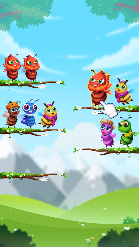 - When you arrange enough bees on the branch, they will automatically fly away, your task is to sort the remaining bees until the end, and you will win.