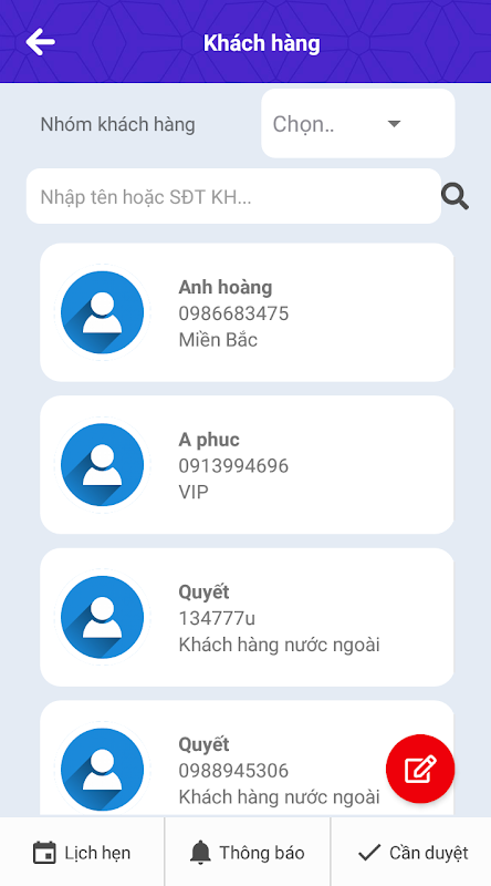 • Quản lý khách hàng trực tiếp trên app