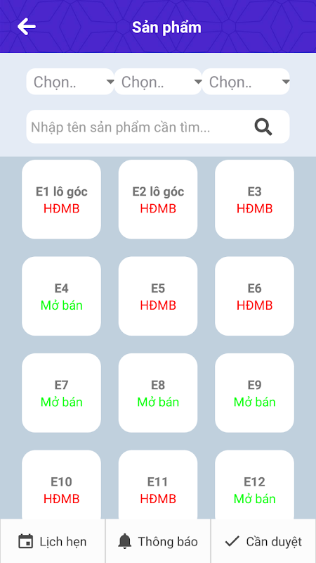 • Xem tình trạng sản phẩm trực quan theo màu sắc