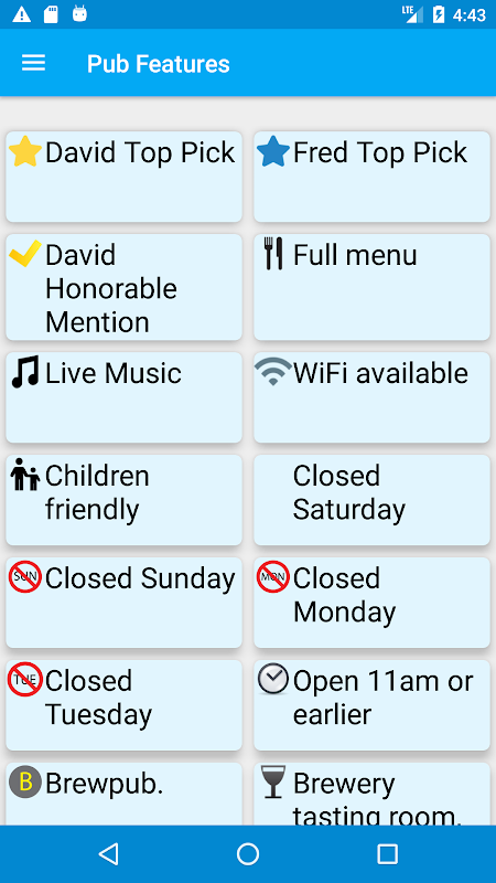 Each entry contains a review, nearest public transportation, contact info, website and twitter handle for each pub. Check the pub's twitter feed for news without leaving the app. A map will show the location of the pub as well as nearby listed pubs.