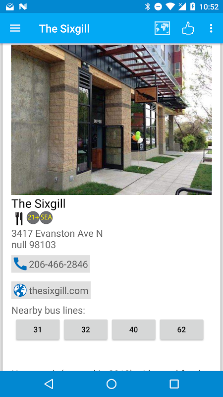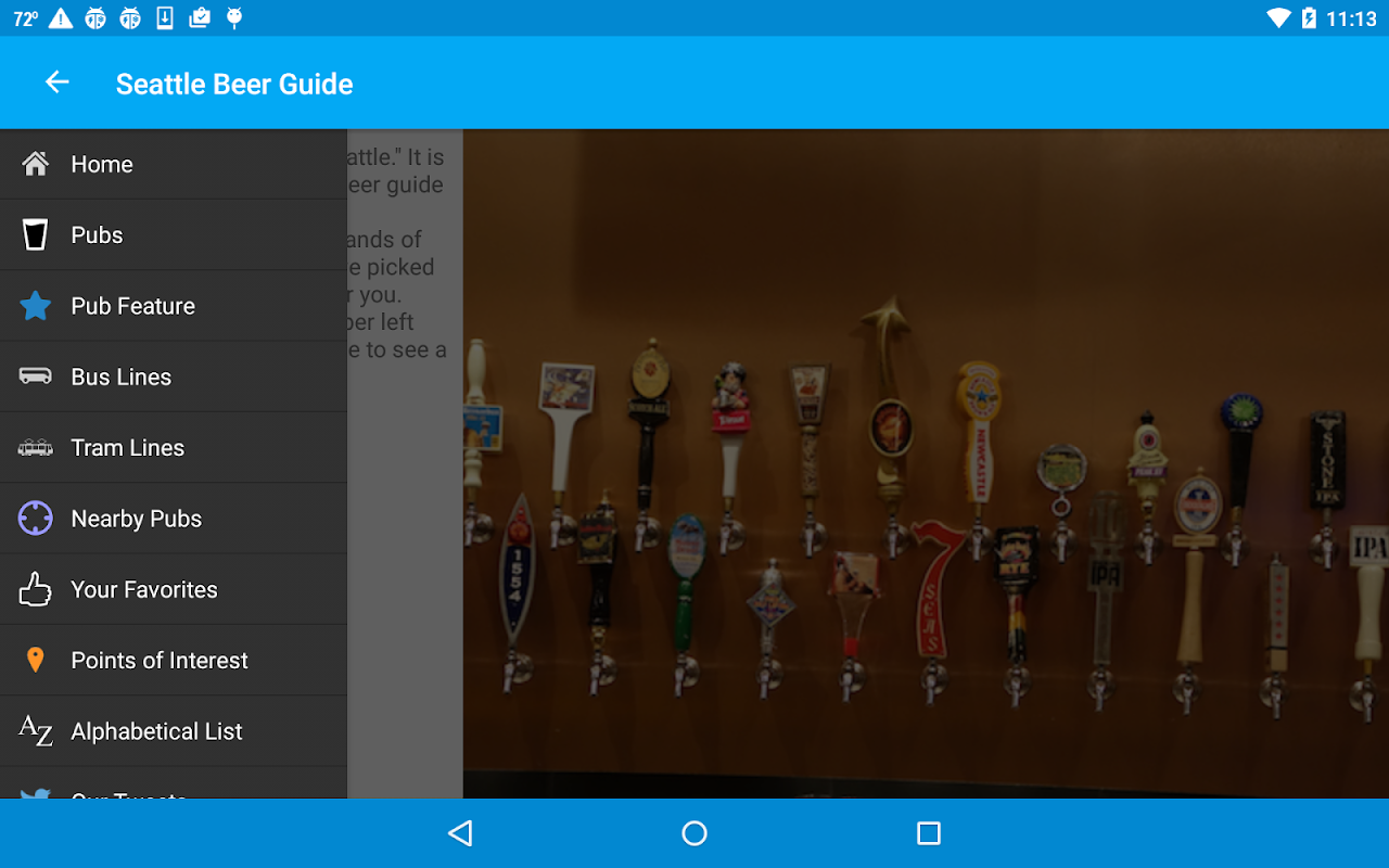 Each entry contains a review, photograph, nearest bus lines, contact info, website and twitter handle for each pub. Check the pub's twitter feed for news without leaving the app. A map will show the location of the pub as well as nearby listed pubs.