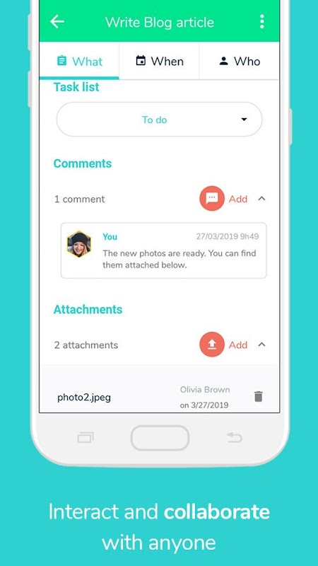 Share files, work together on projects and assign tasks to others with the shared schedule. You can create an unlimited number of members. Work collaboratively and save time with Beesbusy.
