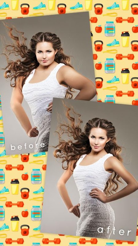 The before after picture maker in Collage Style is best way to convey Changes in your Body like Weight Loss or Body Building Pictures. Before and after picture in one simple Collage to convey message.