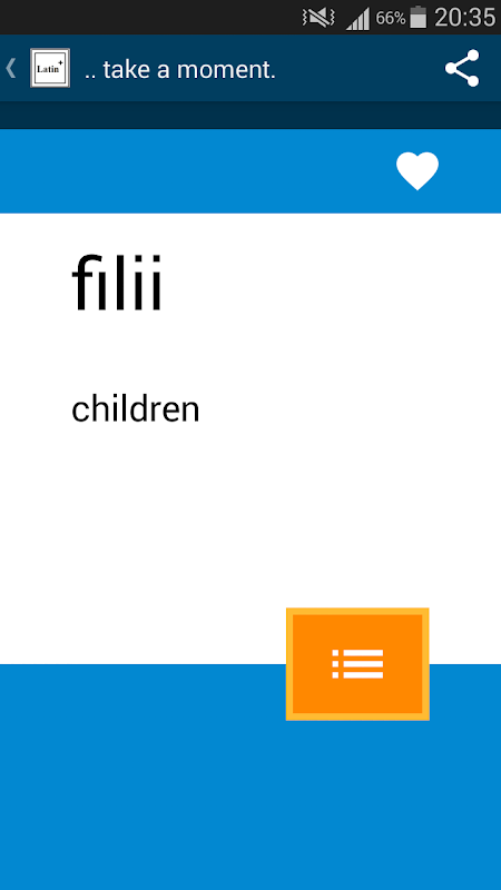 Pace yourself as you go through the almost a thousand common and popular Latin words available in the app. In just a matter of weeks, you will have an essential knowledge of the Latin vocabulary !
