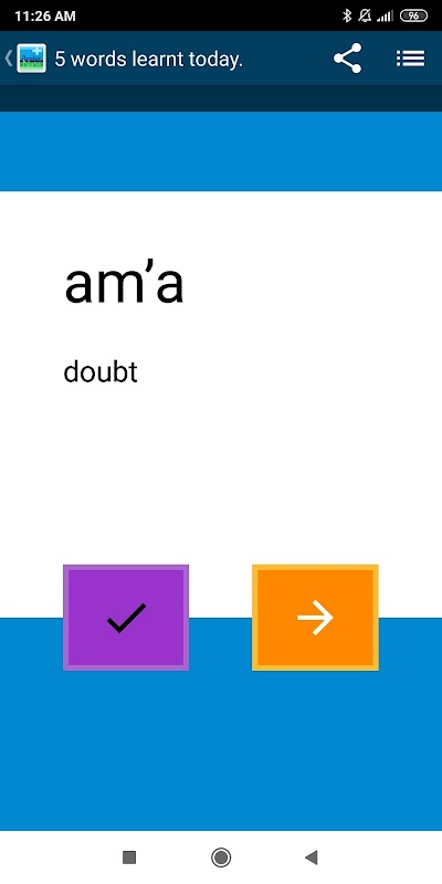 All words 'learnt' are tested repeatedly thereafter, on a basis of decreasing regularity, if answered correctly, as you gain familiarity with the said word. Vice versa, if incorrectly answered, the app will adjust to test you more on the word, or 'deactivate' it, while you learn other words meanwhile.