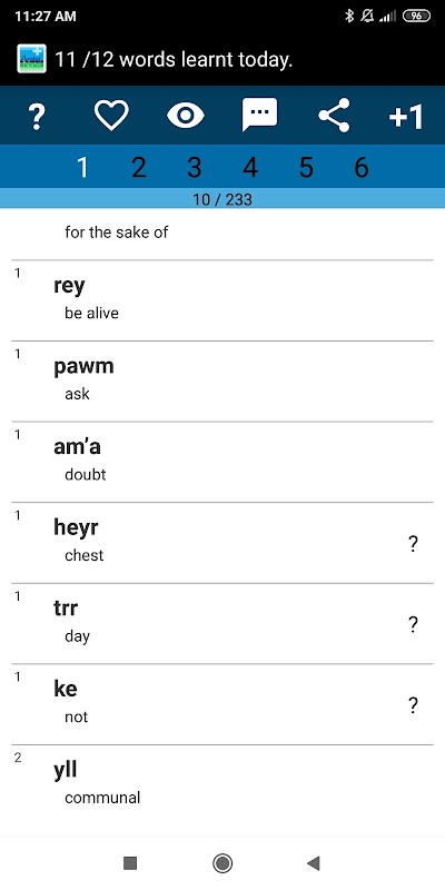 Pace yourself as you go through the hundreds of common and popular Na'vi words available in the app. In just a matter of weeks, you will have an essential knowledge of the Na'vi vocabulary !