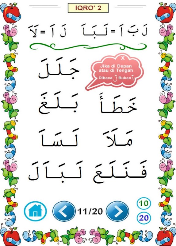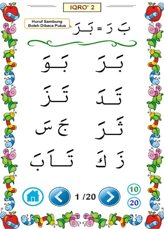 - Iqro' 1: Learn the Hijaiyah letters from Alif to Ya, by reading the fathah ('a').