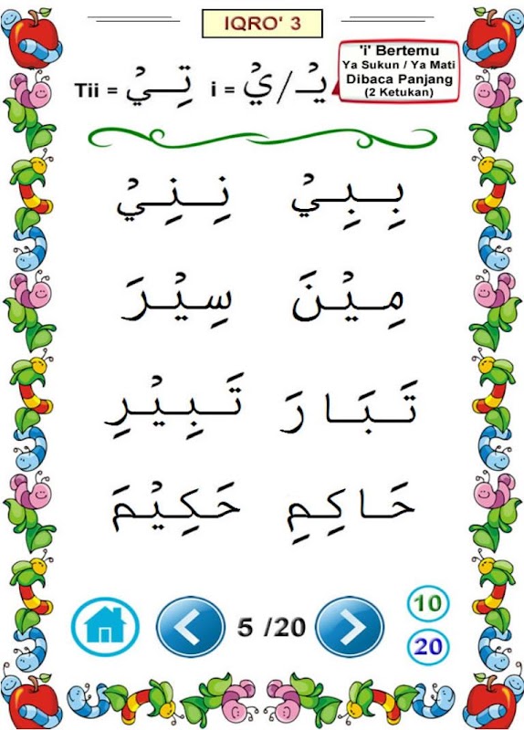 - Iqro' 5: Learn to read waqof, tasydid, mad jaiz munfasil, mad obligatory muttasil, mad prevalent kilmi mutsaqqol, idzhar, idghom, death mim law, etc.