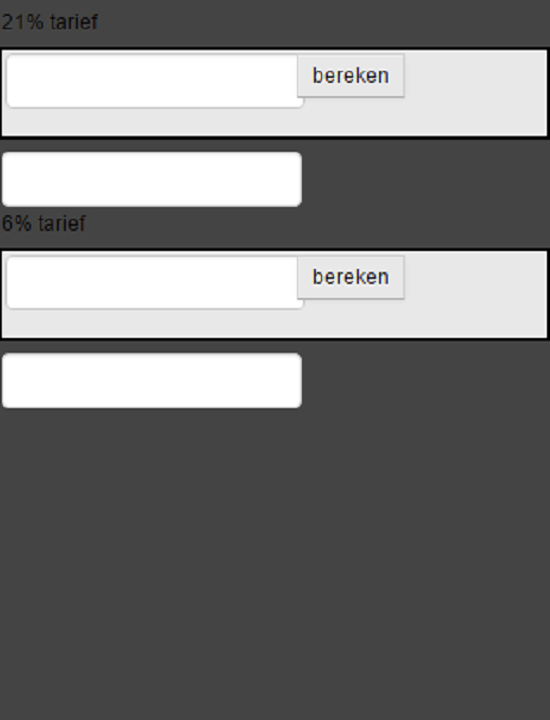 Met deze app kun je heel simpel de btw bereken van een product. Het werkt met het 21% tarief en het 6% procent tarief.Je hoeft het alleen maar in te vullen en op bereken te drukken