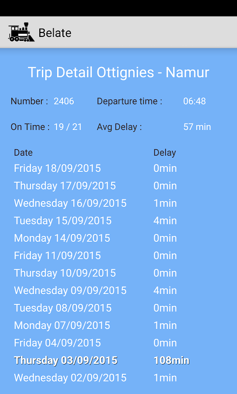 Stat information about train SNCB NMBS delays