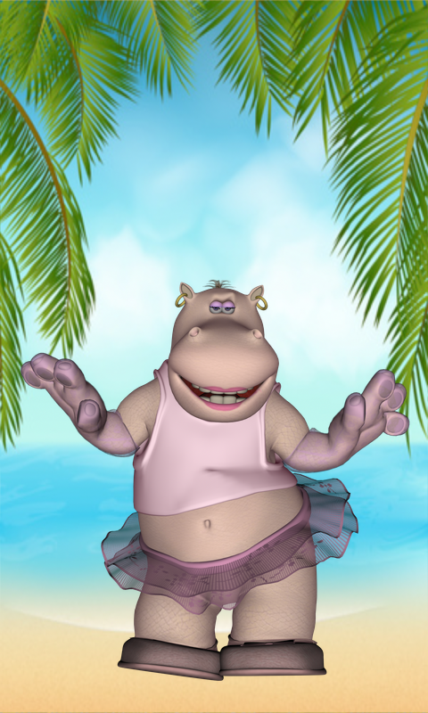 Animated Belly Dancing Bertha the Hippo. Tap on Bertha or the screen to see her moves. Tap parts of her body to hear her talk. Tap different areas for different dance moves. Tap rapidly on the screen for DJ effects! Run your finger along the dance slider to control her moves. Record and save your own custom dances.
