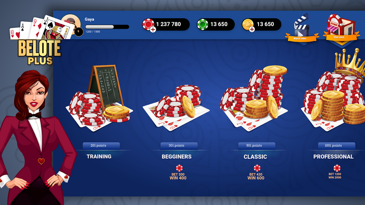 Doesn't matter if you are a beginner or a belote master, you will always find the opponent of your level in this game. The high-level artificial intelligence will always give you a suitable match.