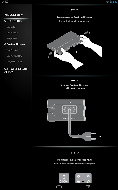 The BeoSetup App also gives you all the relevant status information on your products including firmware and software information as well as serial numbers and IP address etc.