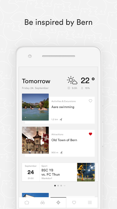 With the Bern Welcome app, you can easily access all the important and useful information you need to explore the city, as well as tips for excursions and activities, an overview of current events and much more.
