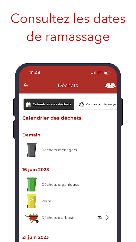 - Access the dates of trash pickups and receive a notification to remind you to take out the trash