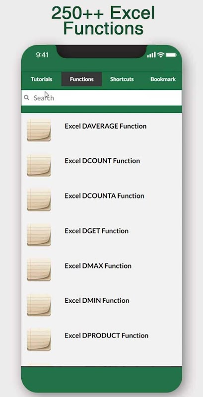 500 ++ excel formulas with example such as Count, Sum, Average, Min and Max, Lookup, If, conditional formatting, data validation, Round, Date and Time, Date series, Text, Financial, and so on.
