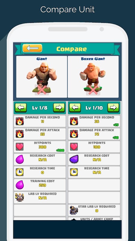 ★★ Need to know how much the new lab upgrade with cost? We have you covered. Want to know what town hall you get level 6 Wizards or level 5 Barbarians? We have you covered. With the addition of the Clash of Clans info section you can answer this and much more. A very convenient way to get all the information for your Clash of Clans village. All buildings, troops, spells, traps and heroes are all laid out in an easy to read format so that when you have a question on upgrade or future hit points or anything you can get the answer quickly.