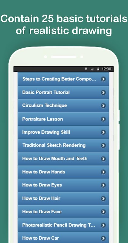 On this app contain several instructions about how to draw realistic drawing step by step easy for kids and adults. Tutorials made easy with illustration pictures. What are tutorial how to draw realistic drawing included on this app? They are: