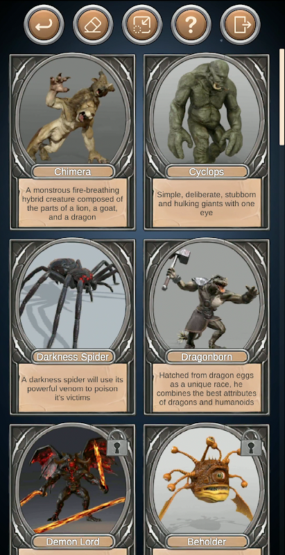 There are more than 30 unique highly detailed and animated fantasy characters in the library. All creatures appear in a full-size scale with an option to shrink them to the size of a miniature.
