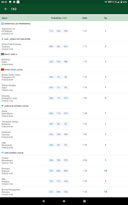 In our application, you can look at over under betting tips, 1x2 prediction, correct score football prediction, both teams to score sections as free betting tips.