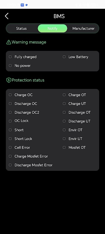 An app for supervising lithium batteries, which connects and manages lithium battery packs through Bluetooth connection. It can view battery data in real-time, including remaining capacity(SOC), battery health(SOH) charging and discharging status, protection status, voltage, current, temperature, alarm, and single string voltage information. Users can always understand the battery situation. This software is intuitive, simple, fast, and convenient. Information instant visual query management through batteries