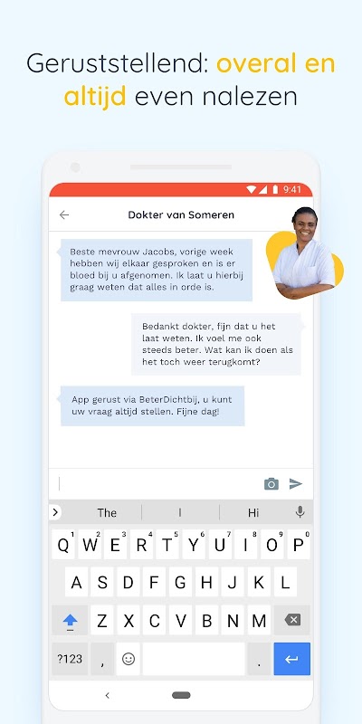 With BeterDichtbij you have secure digital contact with your own healthcare providers. With the BeterDichtbij app you can always ask your questions. And receive the information about your care or treatment and read it in peace.