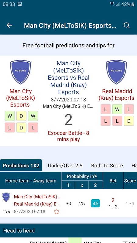 Betimate keep you update latest scores and live sports action. With mathematical football predictions, tips, match previews, scores and statistics for over 200 leagues, Betimate will help you make the best decisions for your bet.