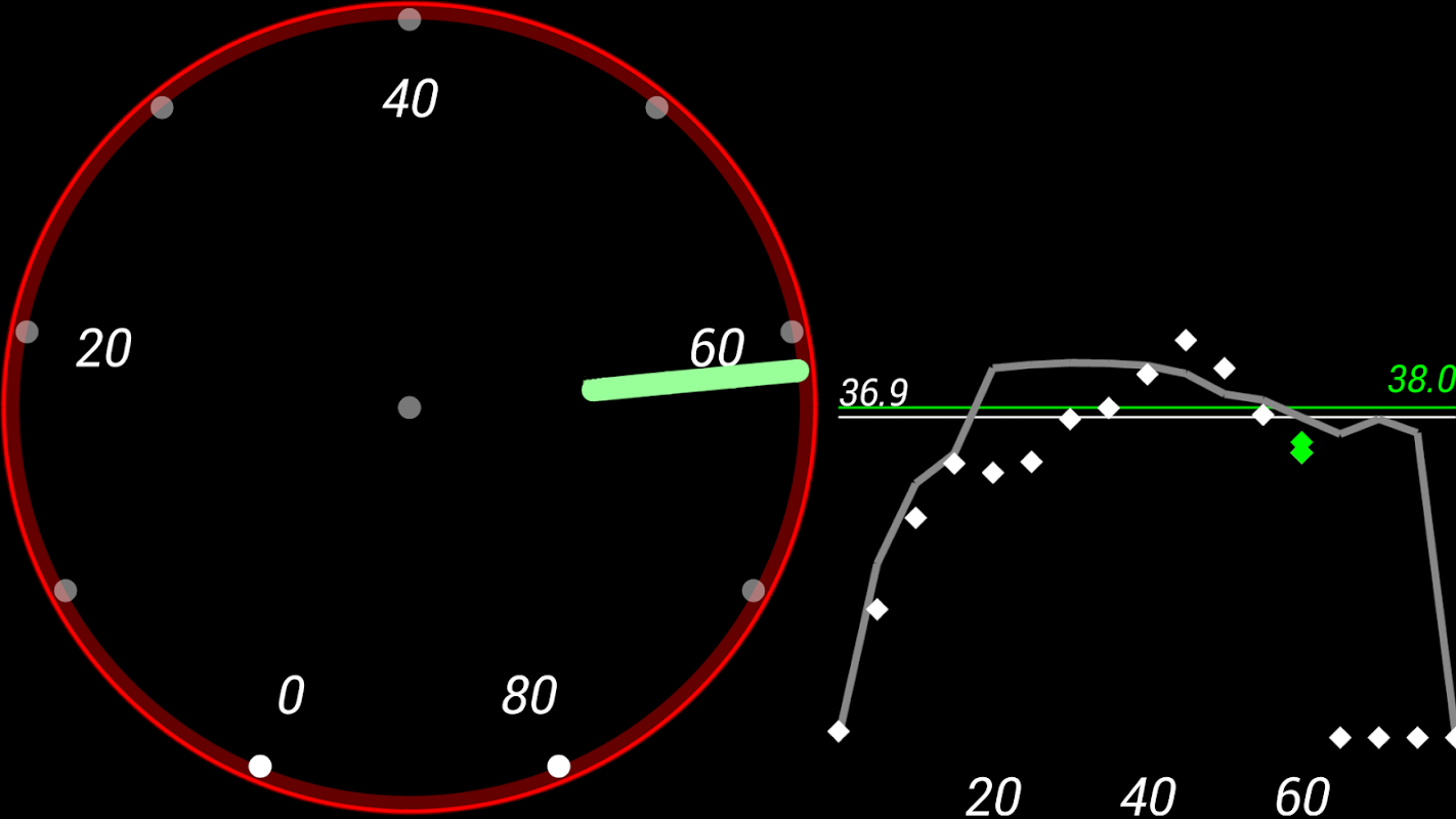 1. Calm acceleration - the needle and tracer on the dial stays green
