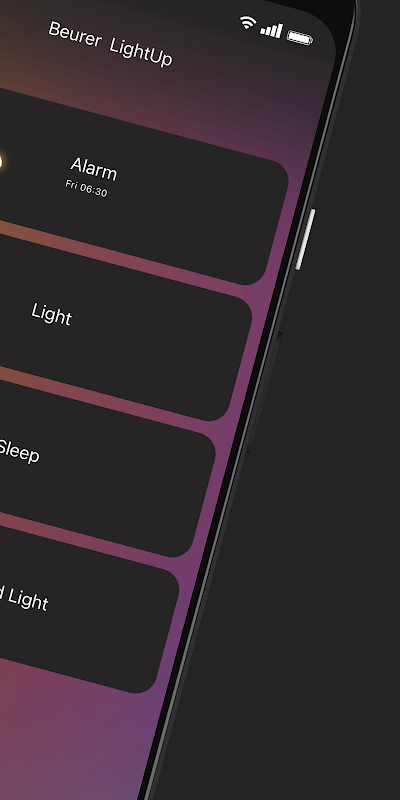 SLEEP – At the end of the day, gently fall into a restful sleep with the simulated sunset, the reddish relaxation light or the mood light with changing colours. The soothing sleep melodies provide additional relaxation.