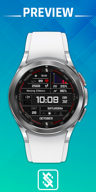 NOTE : Some features may not be available on some watches. This watch face will not apply to square face watches.
