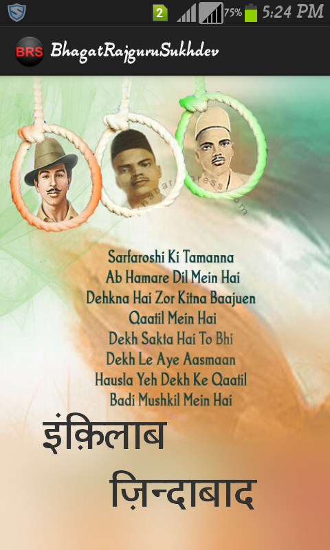 This application serves the info about life of Bhagat Singh, Rajguru, Sukhdev.