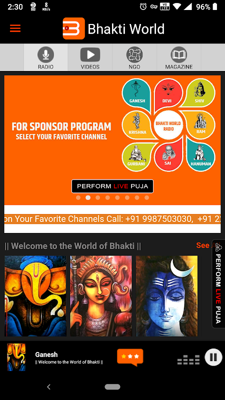 Bhakti World App encompasses – Radio, Video, Magazine and Bhakti World NGO all in ONE APP.