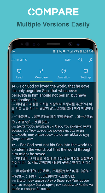 - Easily switch reading mode from One Verse mode to Compare mode